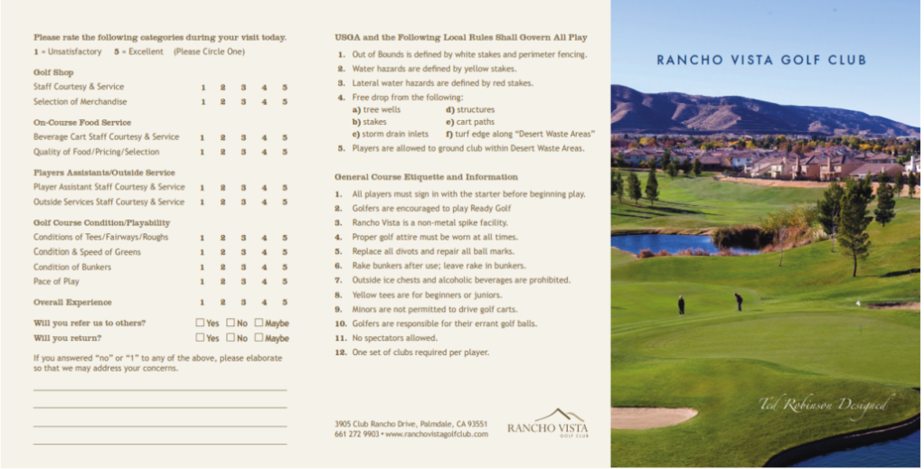 With contoured fairways and artfully-designed water features and bunkers, golfers of all skill levels are offered a challenging yet playable experience at Rancho Vista Golf Club. The 6,659 yard, par 72 golf course designed by Ted Robinson has been voted by golfers as one the Best Public Golf Course in California.